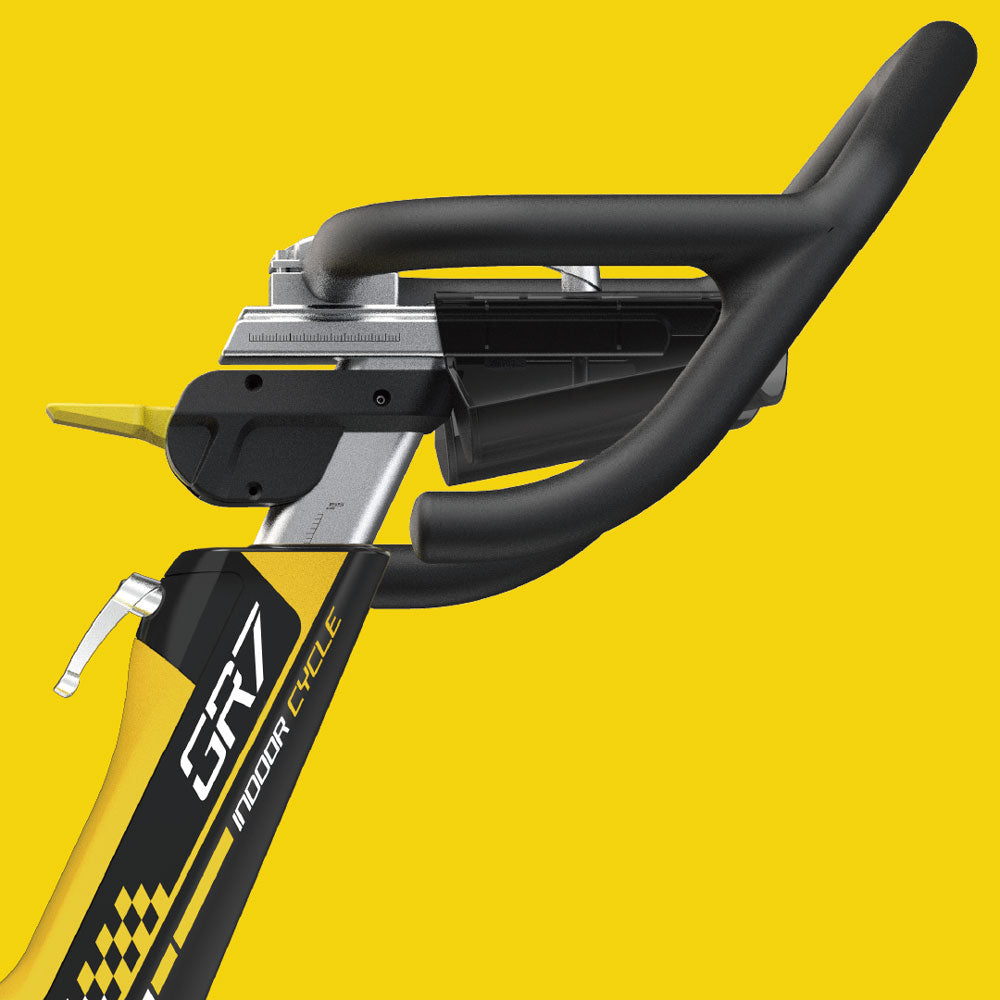 The GR7’s frame geometry is inspired by Tour de France-level road bikes, giving you the same riding posture and feel as your favourite outdoor bike. Fully adjustable handlebars and seat positioning let you dial in the perfect fit for sprints, endurance rides and everything in between.