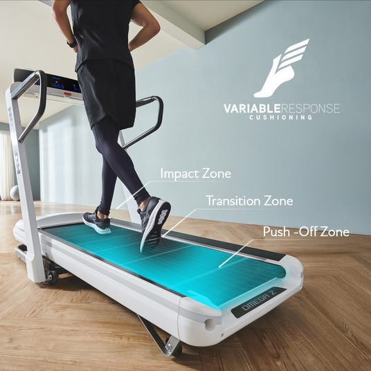 The Omega Z's deck is built using the same construction principles we apply to our commercial gym equipment, maximising grip, longevity and noise reduction for the home.