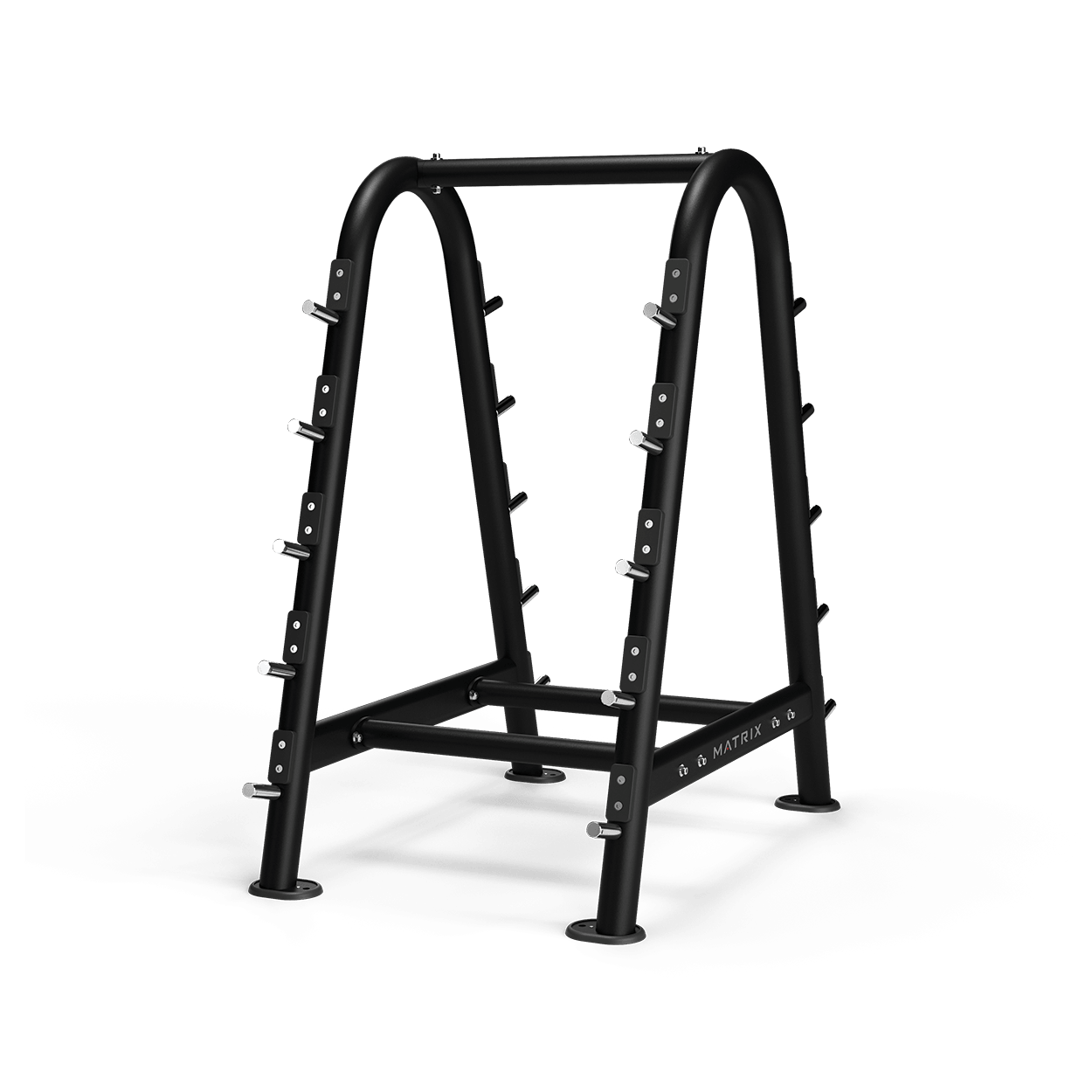 The Matrix Magnum Barbell Rack provides a stylish, space-saving storage solution for up to 10 barbells. It includes a max weight per shelf of 50 kg / 110 lbs. and a max overall weight of 294 kg / 650 lbs. The frame features a proprietary two-coat powder finish for long-lasting durability.