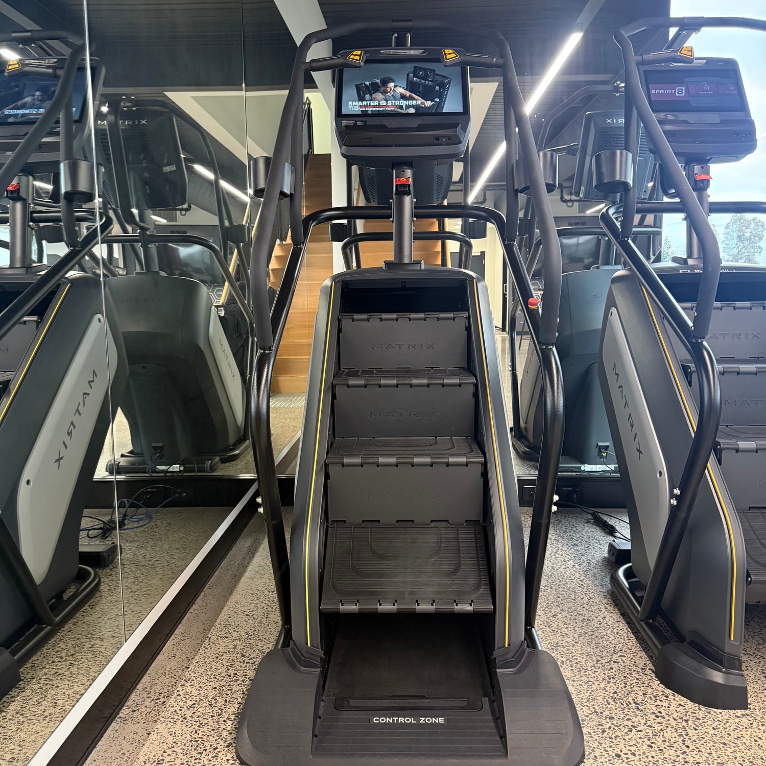 Engineered for tough environments and non-stop use, the Matrix Performance ClimbMill delivers a powerful stair-climbing experience with extra safety built in. Its Control Zone feature instantly halts movement if the stairs are obstructed, while premium components and ergonomic details ensure every climb feels smooth, secure, and comfortable.Ā