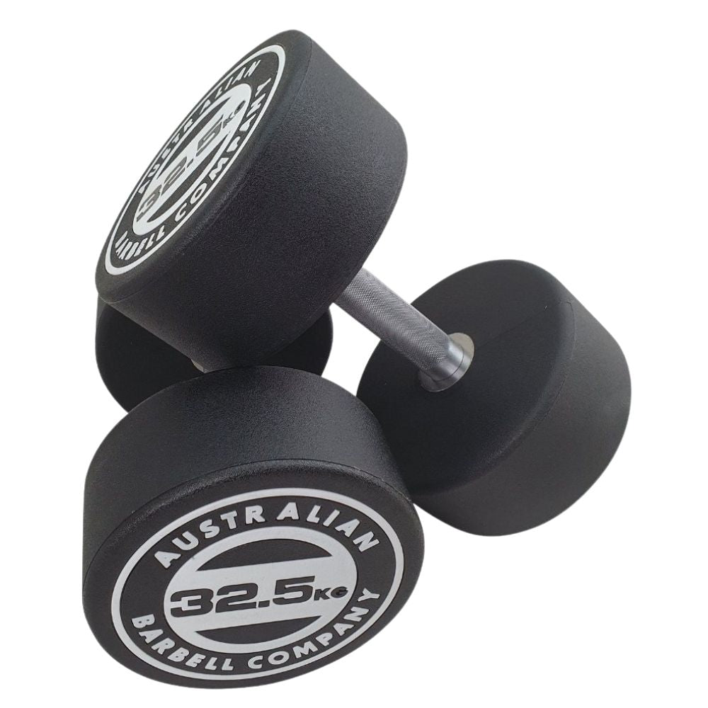This polyurethane dumbbell and barbell range features a sleek, one-piece design with fully knurled, straight hard-chrome handles on the dumbbells. The large, clear sizing and simple, clean aesthetic ensure both functionality and style.